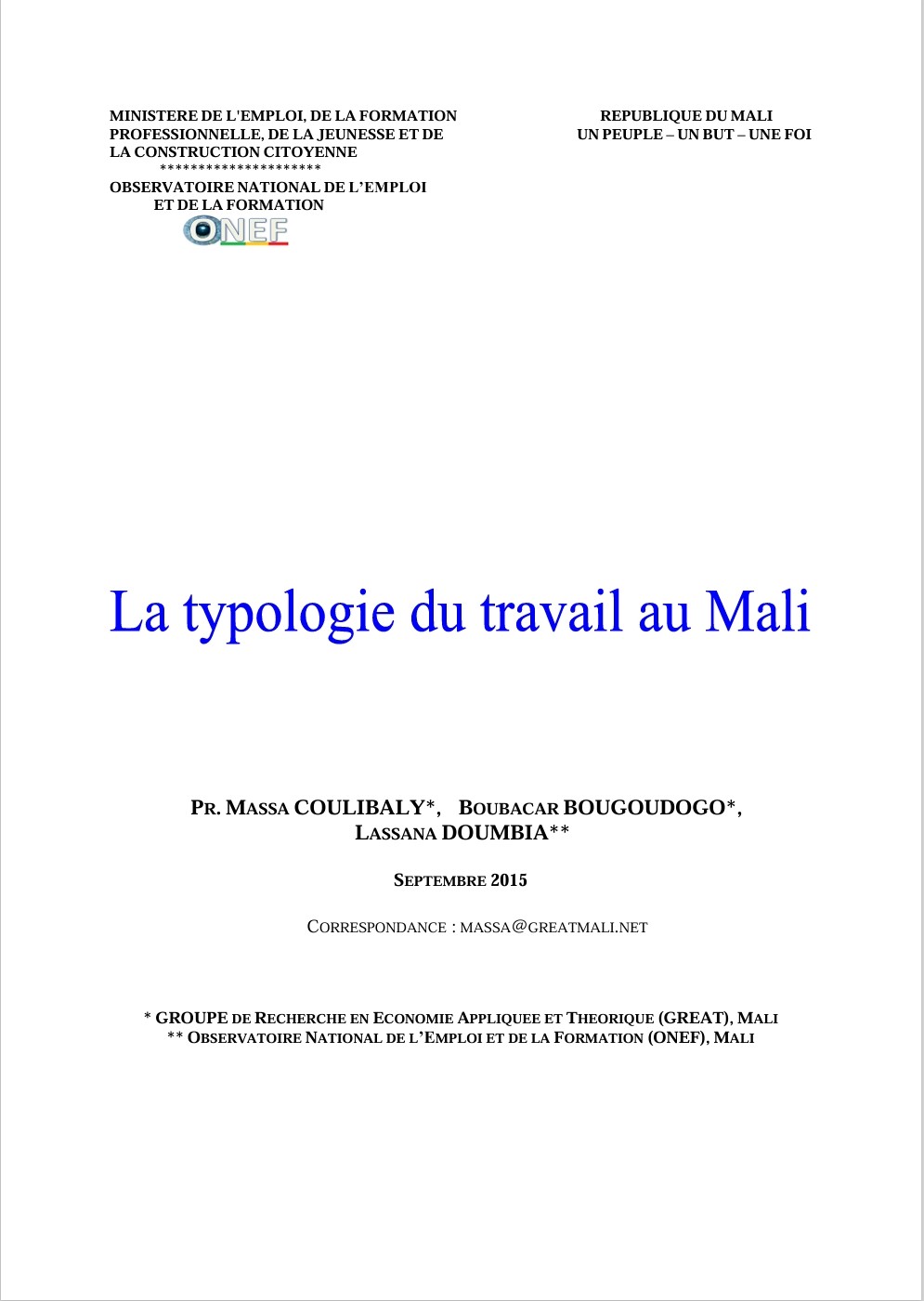 Typologie-du-travail Auteurs:PR. MASSA COULIBALY, BOUBACAR BOUGOUDOGO, LASSANA DOUMBIA** Date de Pub :2015 |