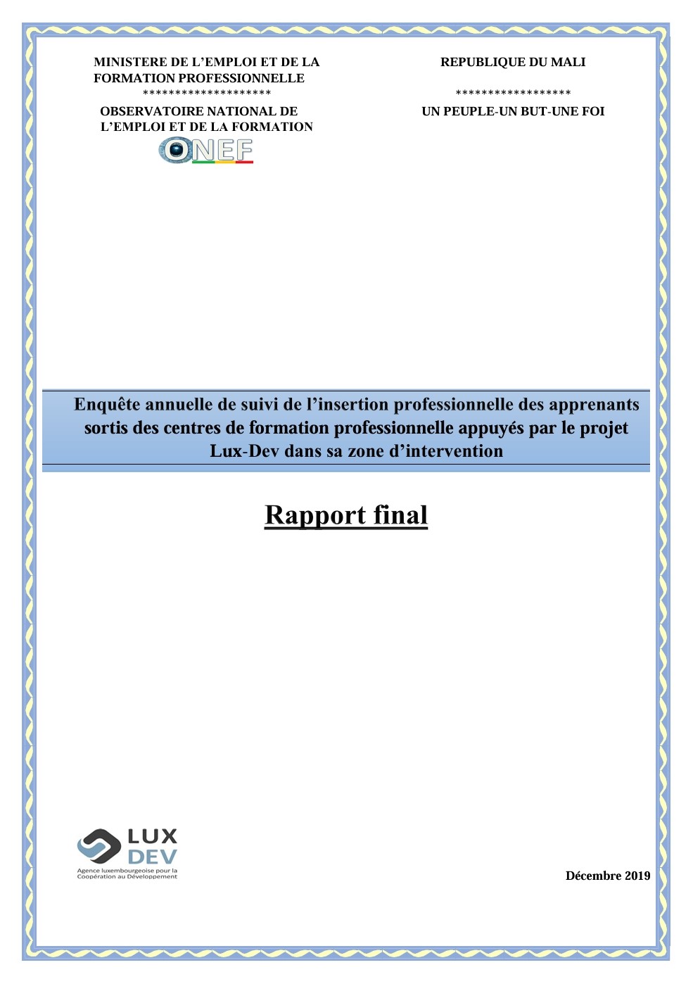 Rapport_Etude_Insertion_15012020_Validé_21022020 Auteurs:ONEF/LuxDev Date de Pub :2019 |