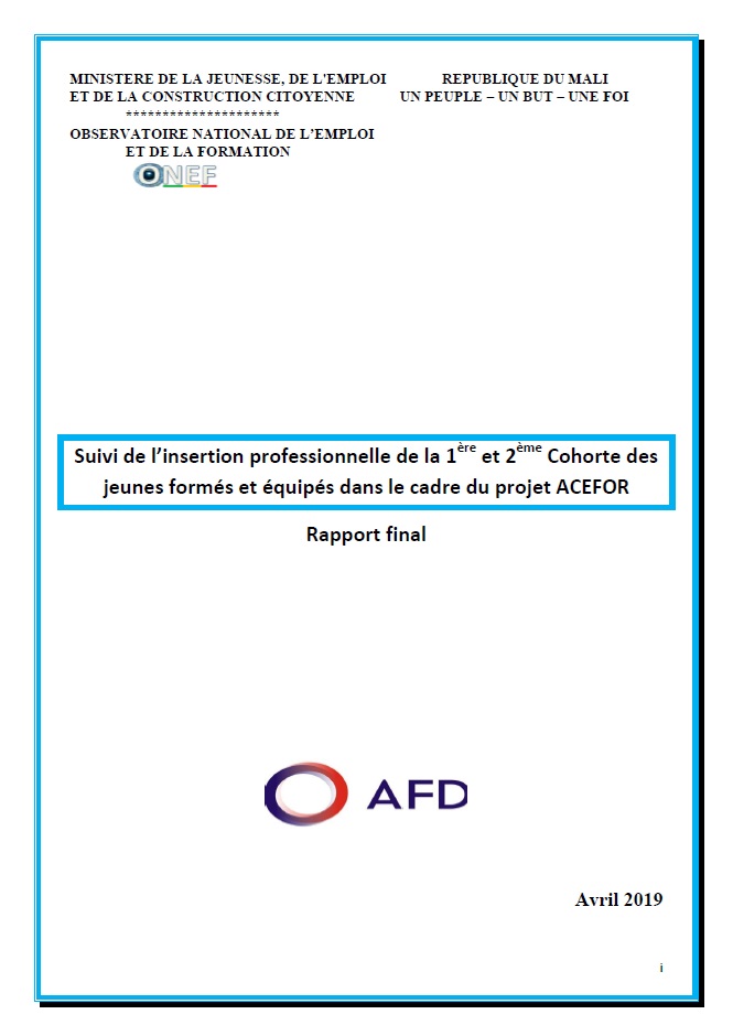 Rapport_Enquête_Insertion_Cohorte 1 et 2_ACEFOR Auteurs:ONEF/AFD (ACEFOR) Date de Pub :2019 |